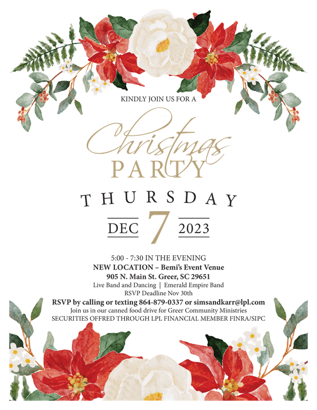**When Registering please enter all guest names in the message field** **NEW LOCATION - Bemi's Event Venue in Greer. See the map and directions**